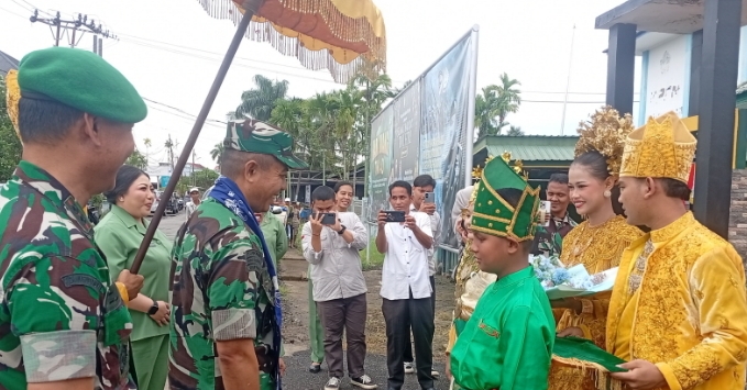 Kedatangan Danrem disambut secara khidmat oleh seluruh jajaran Babinsa dengan yel-yel penuh semangat. Suasana semakin meriah dan berkesan dengan penampilan Tarian Sekapur Sirih yang dipersembahkan khusus sebagai bentuk penghormatan.