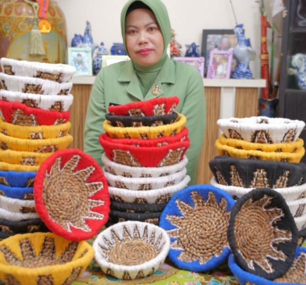 LiputanJambi.id – Bukan sekadar tanaman air yang sering dianggap gulma, eceng gondok kini bertransformasi menjadi karya seni bernilai tinggi. Hal ini dibuktikan oleh Ana Rianty, istri anggota Kodim 0419/Tanjab yang berhasil mengolah bahan alami tersebut menjadi keranjang buah yang estetis dan bernilai ekonomi.